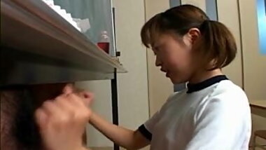 "Cute Japanese student getting jacked-off by sexy teacher"