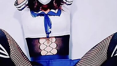 "JK Uniform, Sexy Ladyboy Cosplayer Playing Sex toy, Cosplay Kawaii Japanese Crossdresser part.9"