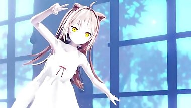 "Cute Cat Girl Dancing In White Dress (3D Hentai)"