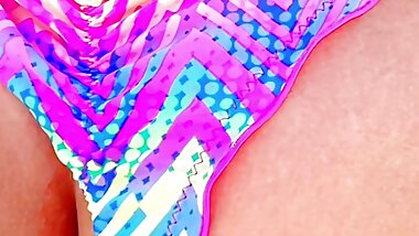 "Japanese Girl in Tiny Thong Bikini Shows Off Her Boobs"