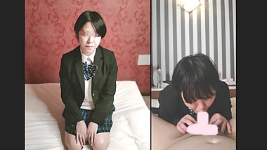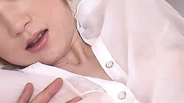 "Japanese cutie gets her pussy teased and her face creamed "