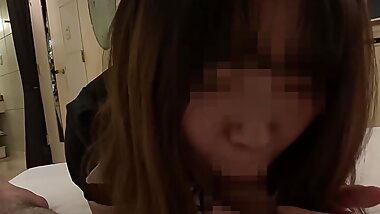 "Japanese Girlfriend sucking outdoor and riding my little dick "