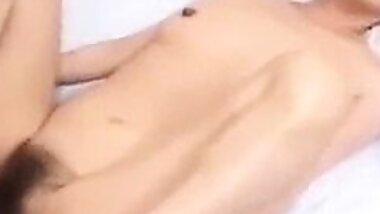 "Sexy Asian babe have lots of fun with her boyfriend in their bedroom"