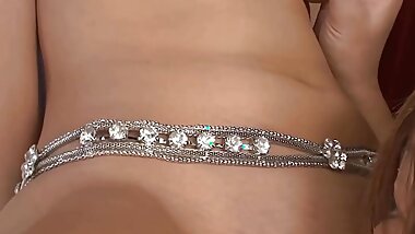 "Lingerie wearing brunette hottie rubbing on her pussy"