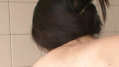 "Japanese housewife Asuka is pleasing a guy, uncensored"