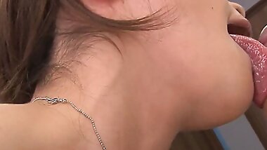 "Reiko Hanasaki with juicy tits sucks cock"