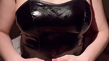 "Fejira com Masturbation orgasm in leather with latex headgear"