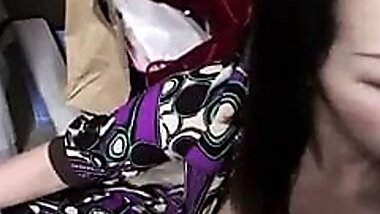 "Oiled up Japanese mature Ai Sayama sucks two dicks"