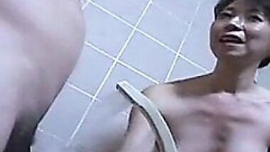 "Japanese mom gives blowjob step son in shower"