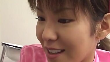 "Nurse in black stockings, Rika Tamura, deals cock at work"